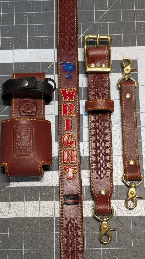 #FirefighterGifts #ChristmasGifts #CustomGear #FireRescue #SCBA #LockerTags #FireFamily #TruckOn #Jawbtown #radiostrap #glovestrap #leathersmith #fireleather #suspenders #helmetband #leathercraft #leather #handmade #tradition #firetradition #custom #wallet #jawbs #thinredline #barryking